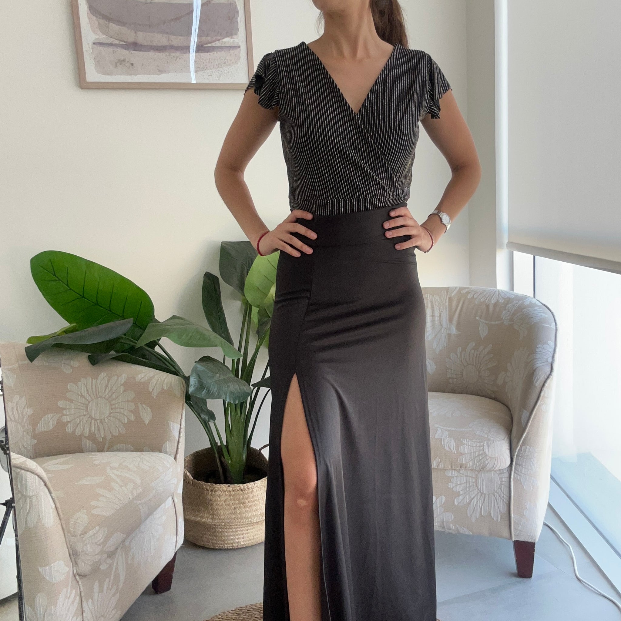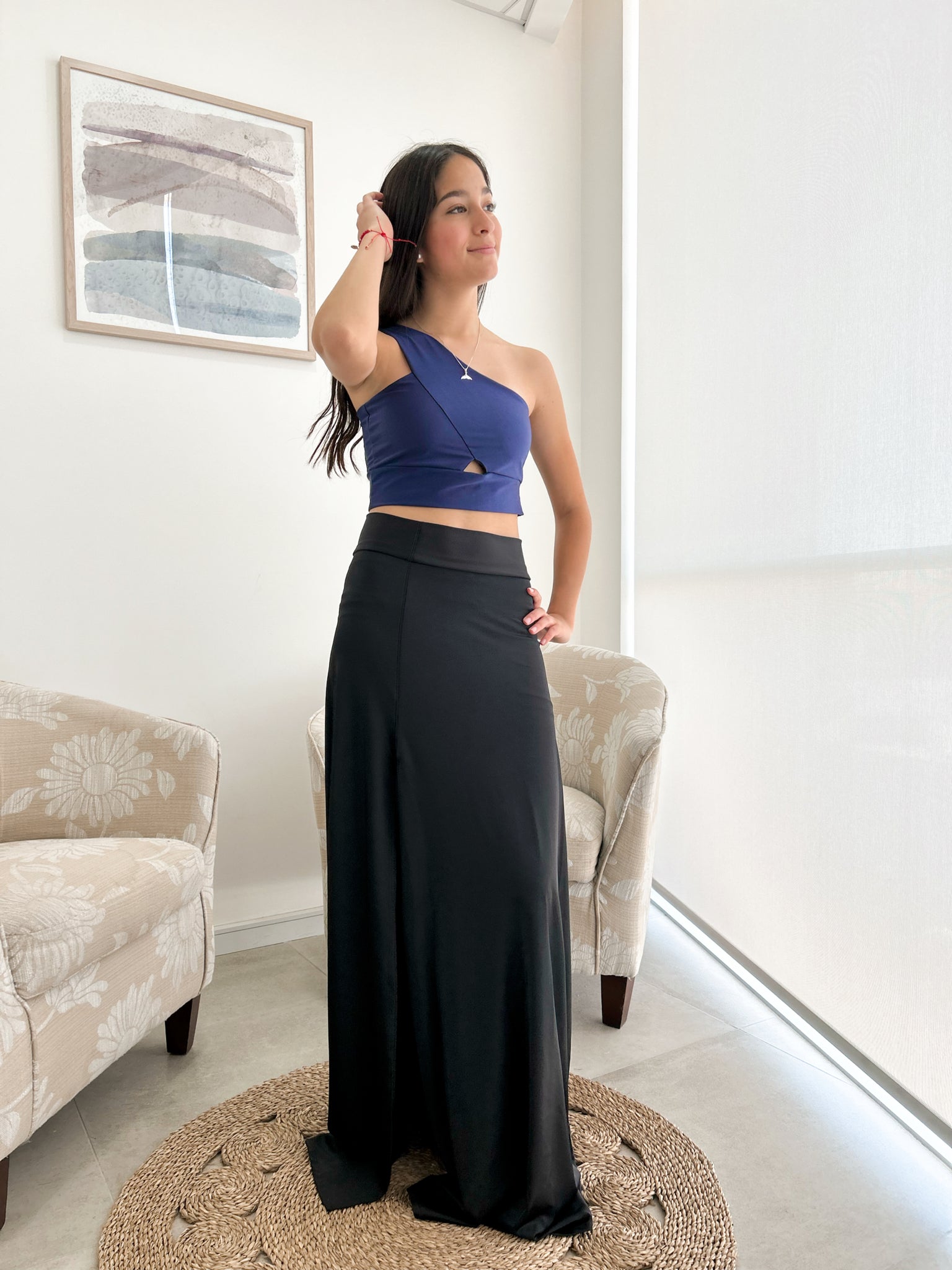 Material Lycra Dupont. Talla Unica. Elasticada. Puedes combinarla con el top que mas quieras, ya que el negro va con todo.