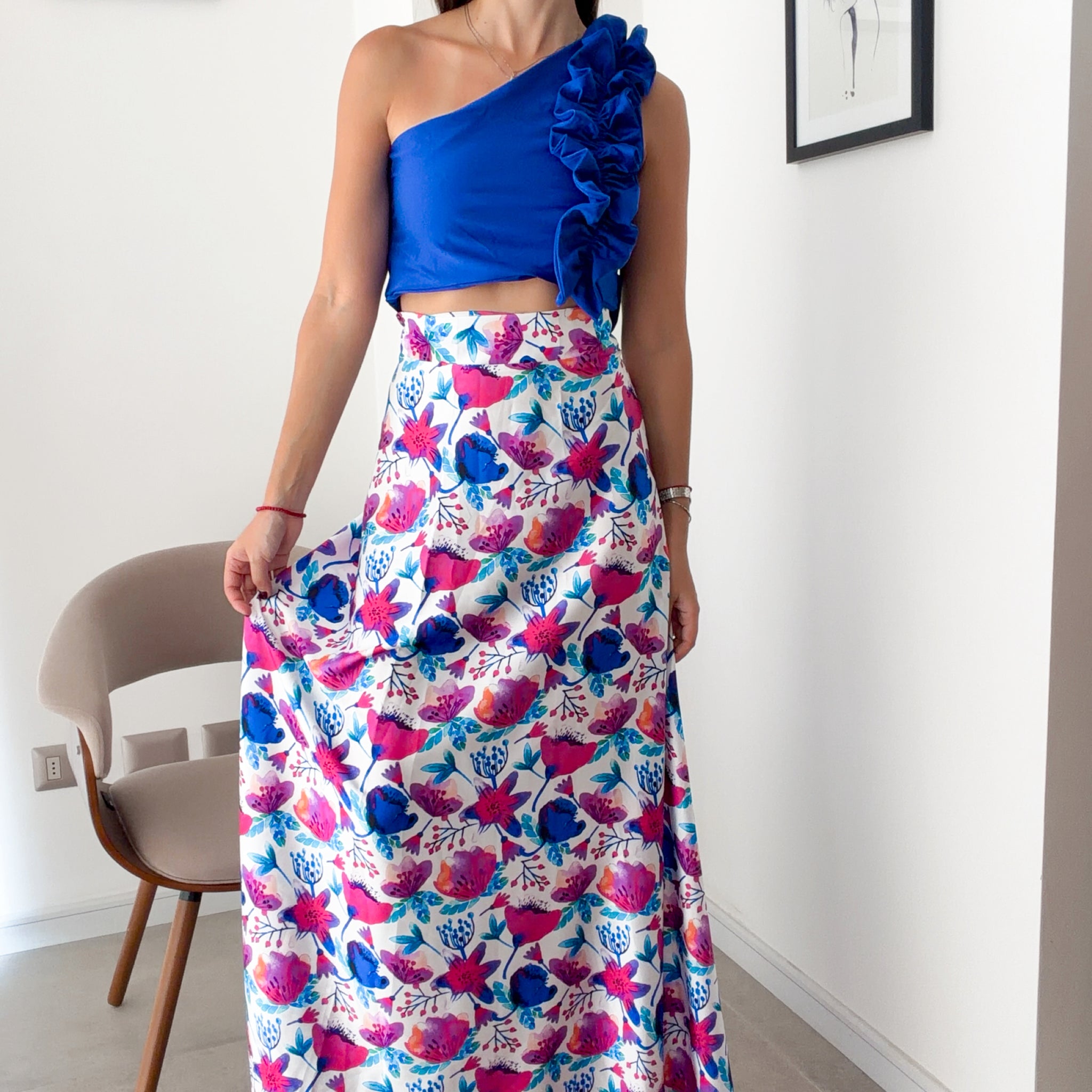 Preciosa falda envolvente de satin. Ultra liviana y fluida. Es modo pareo asi que te la puedes ajustar a tu talla. Puedes combinarla con una infinidad de colores como blanco, azul, rosa, turquesa, etc.