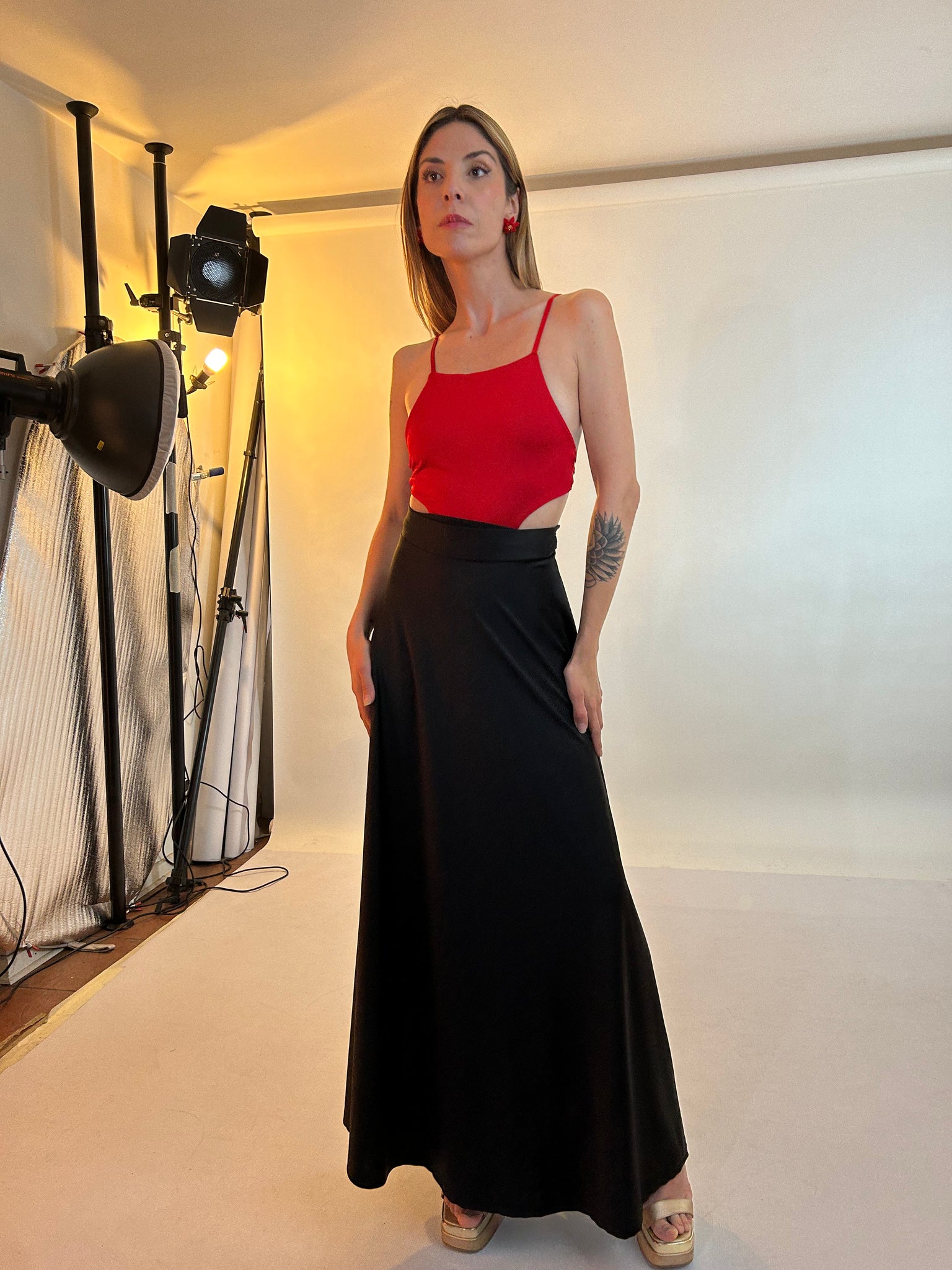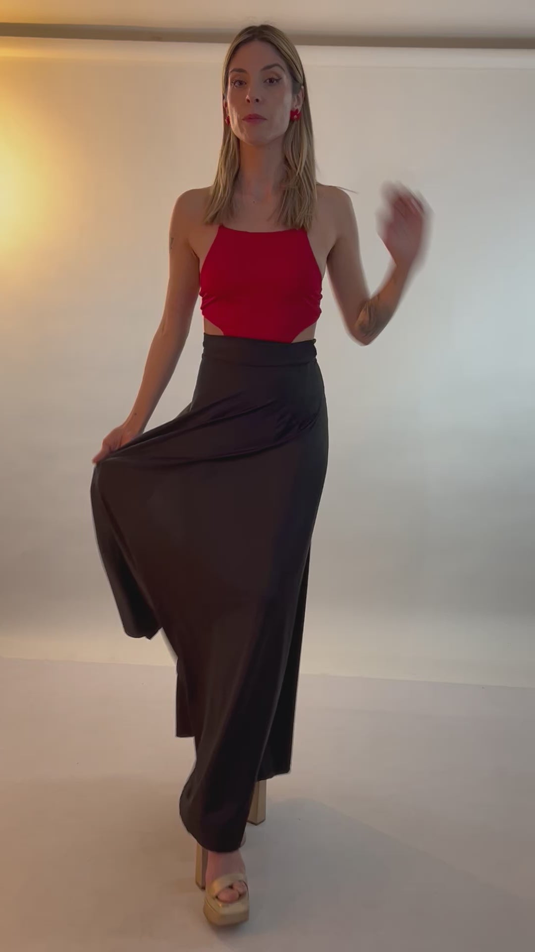 Versatil, ya que la puedes combinar con cualquiera de nuestros tops, comoda y con mucho ruedo para que destaques entre todas! Definitivamente una falda con presencia! Agregale color con nuestros aros o tapados.